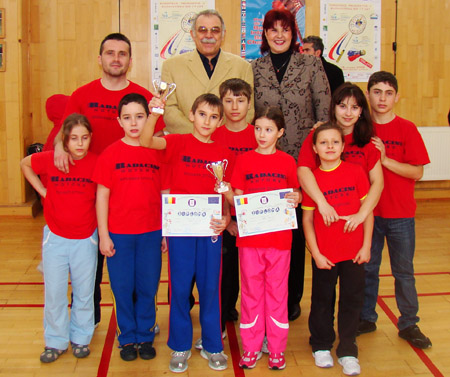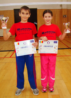 O pagina de istorie pentru CSB! Asta s-a scris in weekendul 29-31 ianuarie 2010 la Onesti la Cupa Trotus - Etapa de Campionat National la categoriile 11 ani si 17 ani. Cel mai bun rezultat pentru CS Berceni de la infiintarea lui in aprilie 2009 si pentru prima oara in "istoria badmintonului" de la Berceni, categoriile de 11 ani au fost castigate de sportivii nostri. Alexandru Muscalu a dominat categoria baietilor, castigand printr-un meci spectaculos si aplaudat de intreaga sala, finala impotriva sportivului Hancu de la CS Galati. Andreea Muscalu, mult mai emotiva, a reusit sa castige printr-un meci foarte greu in 3 seturi aproape de prelungiri finala impotriva sportivei Badea de la Bucuresti.